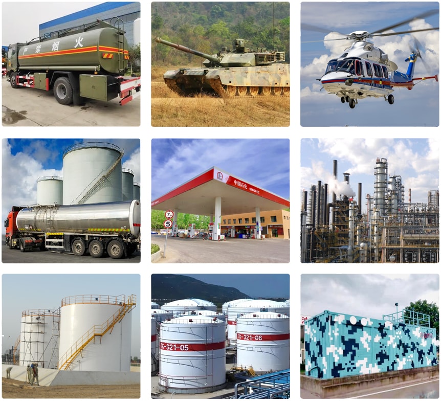Protect the safety of inflammable and explosive liquid and gaseous hazardous chemical storage and transportation containers and devices, and effectively inhibit the explosion of hazardous chemical media (including gasoline, diesel, methanol, liquefied petroleum gas, etc.) in the event of open flame, electrostatic spark, welding, shooting, collision, wrong operation and other accidents.